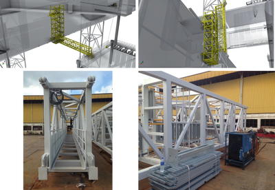Access to a platform in the North Sea was required from a new harsh-environment jack-up. Hampco was contracted shortly before delivery of the rig from a Singapore yard to develop an access concept and complete all engineering design and approvals with DNVGL. A new personnel transfer standard had just been implemented by DNVGL which required additional review and evaluation but all design, approvals and manufacture were achieved in a very tight delivery schedule. The completed access tower and gangway were transported with the rig and installed in Invergordon, Scotland.